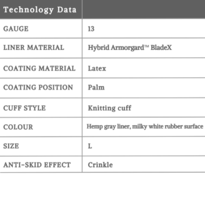 • Excellent anti-cut performance, straight knife cutting grade D, suitable for all types of cutting risk positions Silicone Free